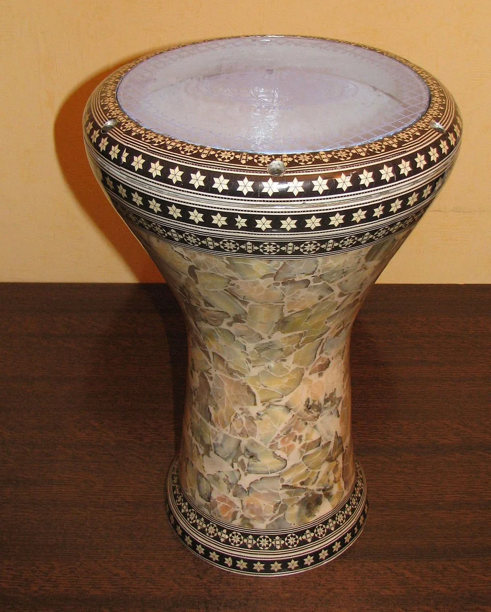The Daf and Riqq — Traditional round wooden frame-drums, often with zills or jingles, constructed with a thin, translucent head made of fish, goat-skin or, more recently, a synthetic material. The sound is produced by hitting the membrane with one hand while the other hand, which also holds the daf, strikes the edges. The Darbukka — A single-head drum with a goblet-shaped body. It is most commonly used in the traditional music of North Africa and the Middle East, and similar drums have been used for thousands of years, as early as 1100 BC in Sumer and Babylonia.